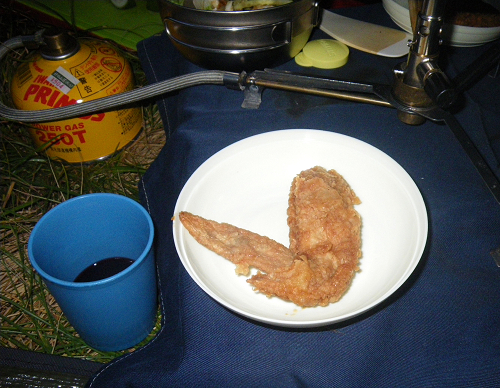 何故かテントの入り口そばに置き去りにされていた ”おつまみ”(笑)